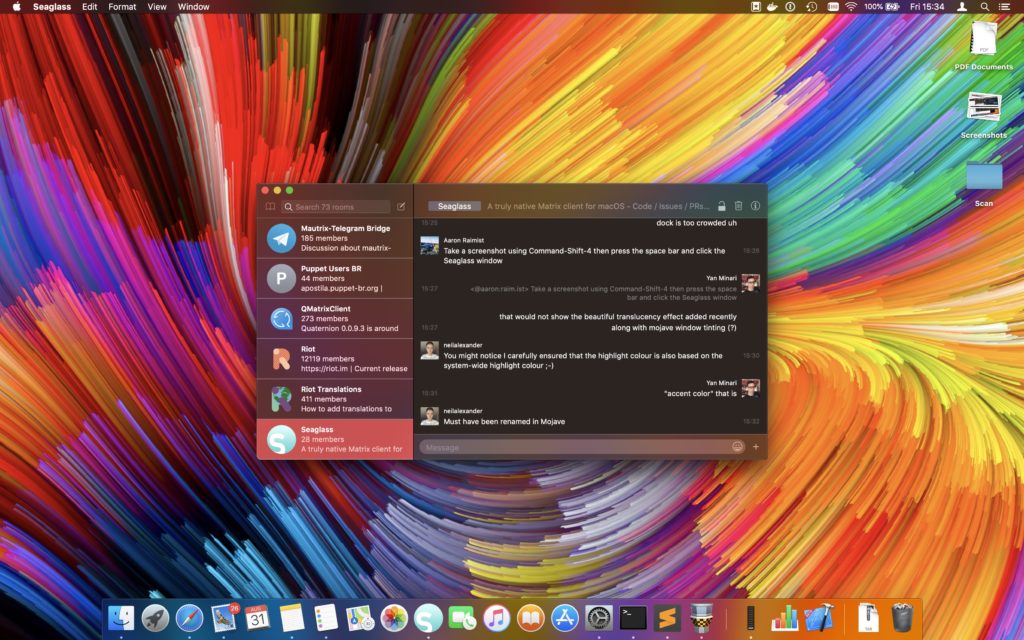 Lots of discussion about this project, specifically the question of how to efficiently render Rich Text. macOS does not make this easy, so a solution being considered is to use a WebKit for room rendering: