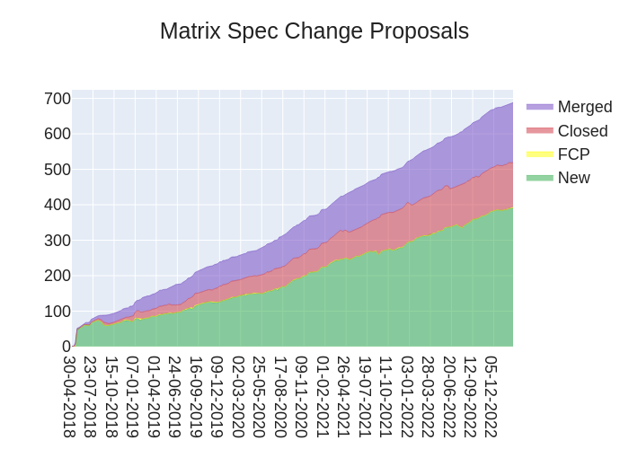 Here's your weekly spec update! The heart of Matrix is the specification - and this is modified by Matrix Spec Change (MSC) proposals. Learn more about how the process works at https://spec.matrix.org/proposals.