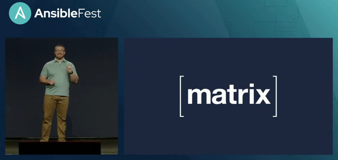 AnsibleFest 2022 happened this week, and the work the community has been doing with Matrix got quite some attention! We got a mention during the Day 1 Keynote (YouTube) and again during an interview with theCUBE.net. Both are worth watching π